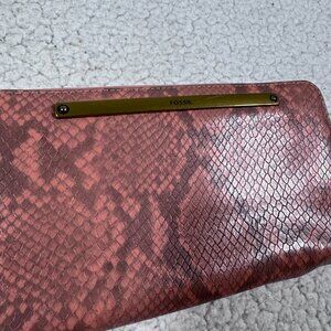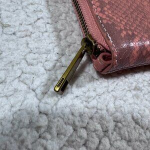 Fossil Women’s Liza Leather Wallet Zip Around Pink Snake Skin Print