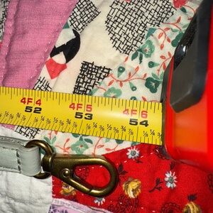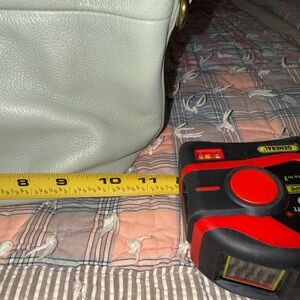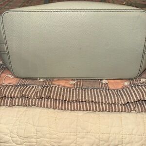 Sophisticated Fossil bag in mint green leather. Perfect for everyday elegance. Durable and stylish. Comes with crossbody strap. See measurements in pics. One callout for an interior clip that pulls the bag together. See pics. It can be resewn. Also some