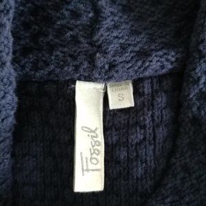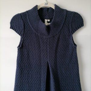 Fossil Womens Navy Blue Cap Sleeve Round Neck Knitted Sweater Dress Size S