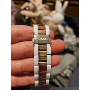 Fossil Women's Pink White Link Band Analog Watch *Working*