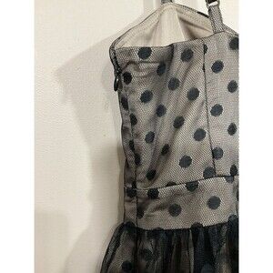 Fossil Womens Polka Dot Mesh Overlay Mini Dress S Black Beige Whimsygoth Retro