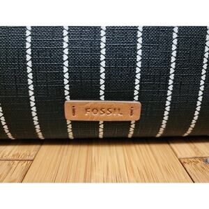Fossil Women's Rachel Leather Printed Tote Bag Medium Black White Handbag Charm