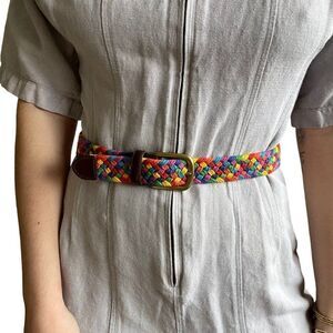 Fossil Womens Rainbow Pride Solid Brass Brown Leather Retro Belt Sz M