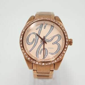 Fossil Women's Rose Gold Tone Watch 40mm Glitter Dial Crystal Bezel BQ1096