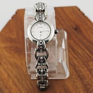 Fossil Women's Silver Decorative Chain Link Bracelet Watch Classy Sophisticated