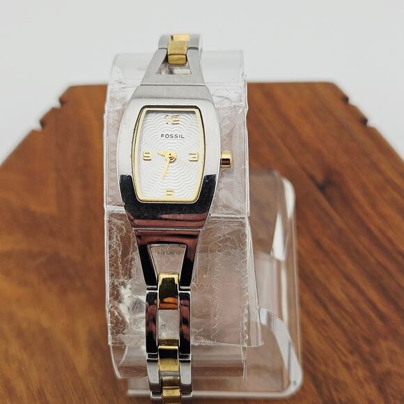 Fossil Women's Silver Tone Bracelet Watch Chunky Link Minimalist ES-9382