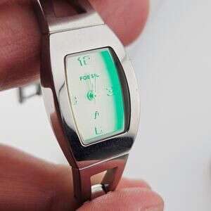 Fossil Women's Silver Tone Contemporary Watch Pink Dial With Green Backlight