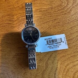 Stylish Fossil watch with a sleek black face. Silver-tone bracelet adds elegance.