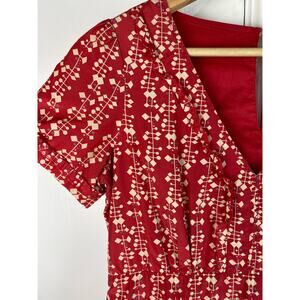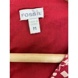 Fossil Women's Size M Red Ruffled Cream Geometric Pleated Front A-Line Dress