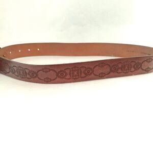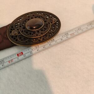 Fossil Womens Small Embossed Brown Leather Belt Medallion Big Buckle 061401