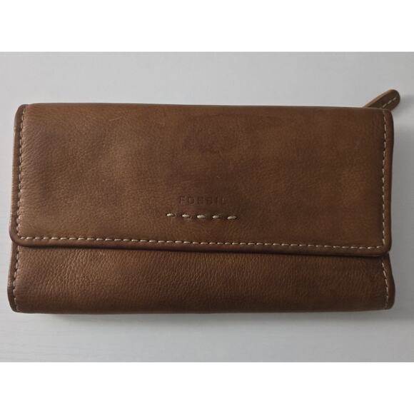 Fossil Women's Soft Leather Brown Large Bifold Snap Shut Wallet.