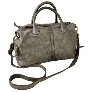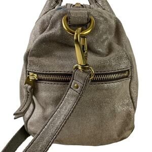 Fossil Womens Suede Metallic Silver Large Erin Satchel Shoulder Bag Purse