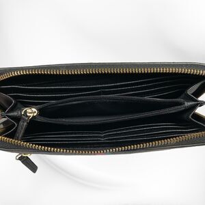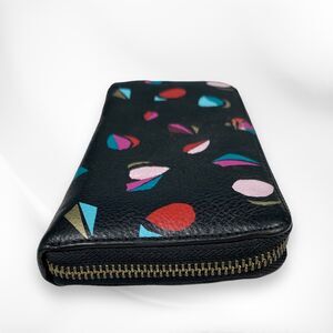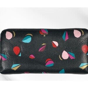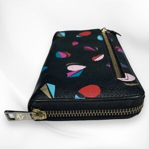 Fossil Womens Wallet Black Leather Geometric Print Zip Around Organizer Unique