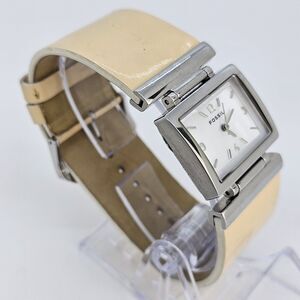 Fossil Women's Watch 28MM White Dial Cream Leather Bands New Battery.