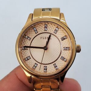 Fossil Women's Watch 30MM Rose Gold Dial Rose Gold Bracelet 6.5" New Battery