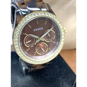Fossil Women's Watch ES2795 Stella Quartz Gemmed Gold Tortoise Shell 37mm (D9625)