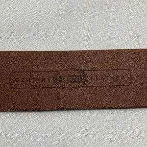 Fossil Womens Wide Leather Belt M Brown Brushed Brass Buckle Classic