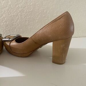 Fossil Women's Tan Leather Heels with Silver Buckle