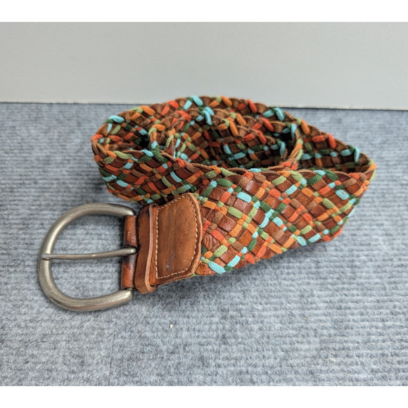 Fossil Woven Belt Women M Y2K Leather Boho Vintage Festival Wide Hip Big Buckle