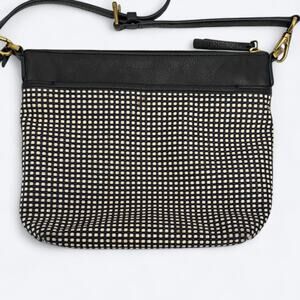 Fossil Woven Black/White Key Crossbody Hand Bag Minimalist Business Careerwear