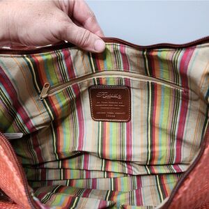 Fossil Woven Straw Brwn Leather Hobo Boho Tote Shoulder Hand Bag Purse 75082