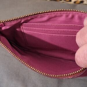 This Fossil wristlet is in excellent preowned condition - No flaws. Red, Fuschia, Maroon and Naples Yellow Colorblock Pattern. 100% Leather. Really Gorgeous! Has a 6 inch Detachable Strap.