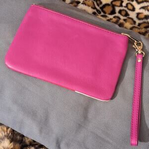 Fossil Wristlet 7" x 5" Red Fuschia Leather Colorblock Clutch Classic Retro