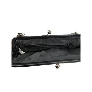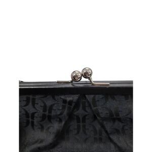 Fossil Y2K Black Leather & Chain Jacquard Fabric Mini Purse Kiss-Lock Closure