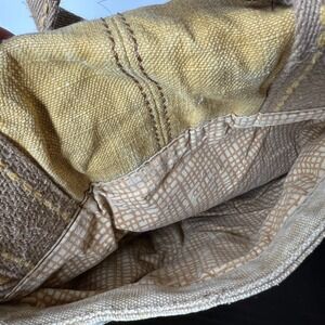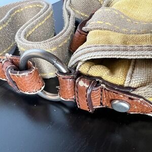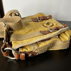 Fossil Yellow Canvas Crossbody Messenger Bag Leather Trim Buckle Flap Organizer