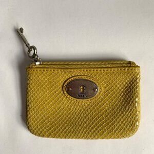 Fossil Yellow Green Leather Snake Embossed Coin Pouch Wallet