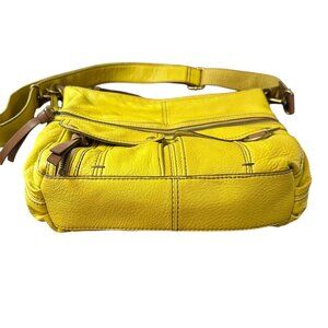 Brighten your outfit with this eye-catching Fossil yellow leather bag, crafted in a roomy crossbody / shoulder style. The supple pebbled leather, functional pockets, and timeless Fossil hardware make it both stylish and practical for everyday use.