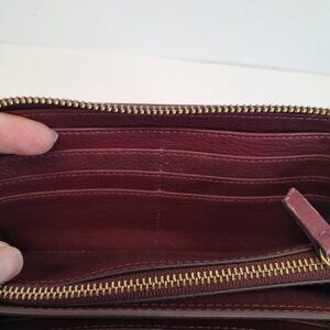 Fossil Zip Around Burgundy Marron Leather Wallet