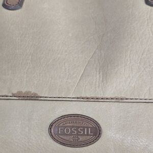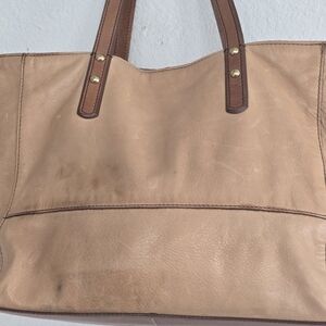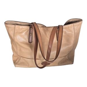 Fossil Zoey Leather Tote Shoulder HandBag Tan Brown Women Large Logo
