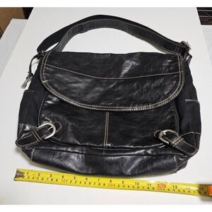 Fossil black Leather & Canvas messenger crossbody bag. Unisex