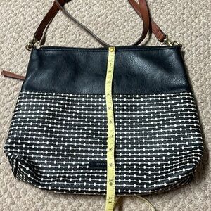 12”x10” black and white Fiona Fossil shoulder bag with multiple pockets