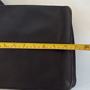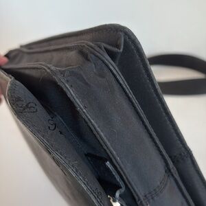 Fossil black leather messenger crossbody adjustable strap bag card pen slots