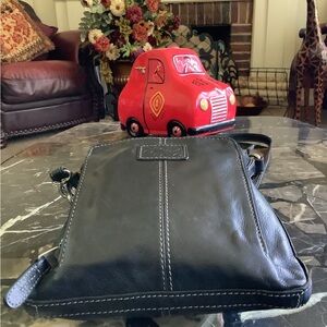 Fossil black smooth leather Fiona organizer crossbody bag 10x10