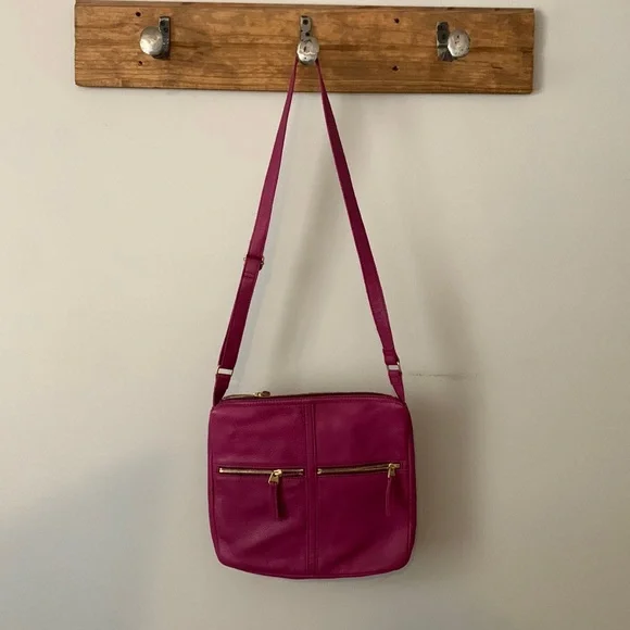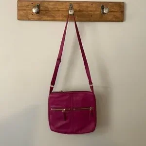 Beautiful fall color! Fossil crossbody! Good hardware. Bought as a gift for my mother she never carried, said it was “too deep” small black scuff on side (last pic) zippers all work. Non smoker house. No pets.