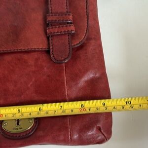 Fossil genuine reddish leather distressed crossbody purse zip close front pocket