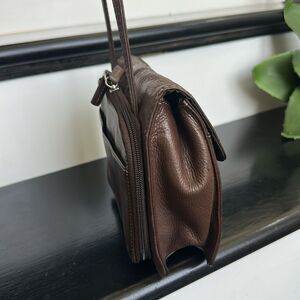 This genuine, leather fossil handbag is soft and luxurious to the touch and a great color no matter this season. The fold over front on the bag has a strong and secure, snap closure, and has the fossil name embossed in the leather on the front. The back of the bag has an open pocket that’s perfect for cell phone and a double zip around compartment for easy organizing. A double compartment Opens to an open pocket and lots of compartments for credit cards as well as a photo ID and zip pocket with an additional large open pocket for even more organizing. Everything inside is immaculately clean. The pulled over flap on the front opens to reveal a large open pocket and the main compartment of the handbag. The inside is immaculately clean and looks brand new. There is a zipper pocket and open pocket for additional organizing and lots of room inside for all your things. This bag is easy to grab and go and has a. crossbody strap that has an approximate 23 inch drop. The shoulder strap is in new condition with no cracks or peeling uncomfortable to carry. This purse is a great size with lots of compartments to organize. No heavy hardware making it easy to carry. The purse measures approximately 8.25 inches across and 7 inches tall, clean and non-smoking.