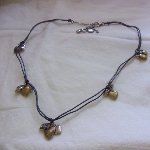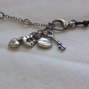 Very pretty and in good shape necklace. It is from Fossil and has a variety of tiny hearts on it. Clasp has a super cute little heart and key charm.