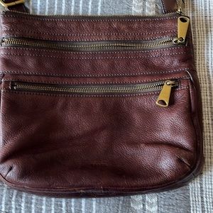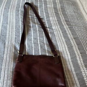 Brown leather Fossil handbag in good shape! A few parts of the leather have small marks but because it’s leather and will do that.
