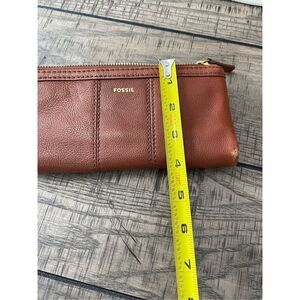 Woman’s leather cow hide wallet The corners do have some wear shown in pictures Other then that , excellent used condition Brown with gold hardware