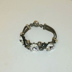 Fossil brand leather bracelet with large clear crystals. 7" long. Gently used condition.