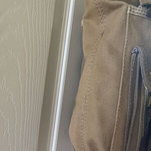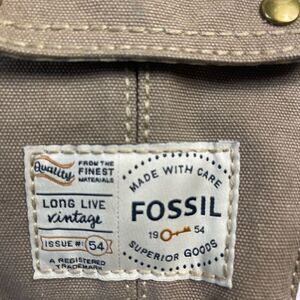 Fossil long live vintage khaki & Brown canvas shoulder bag antique tone hardwares two front pockets with flop closure a side zipper pocket a large front zipper pocket a back compartment top zipper the inside lining has a side zipper two side pockets pre owned in good used condition normal wear clean no tear see all pictures any questions please message.A1