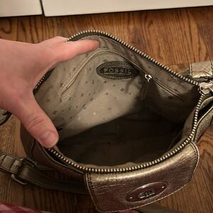 Fossil marlow leather crossbody metallic gold