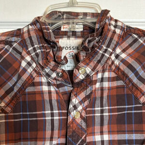 Fossil men’s brown long sleeve pearl snap vintage fit shirt size large