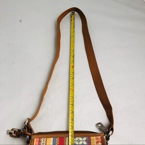 Fossil multicolor boho leather and canvas crossbody bag. Lots of pockets- zip and slip. Adjustable strap. Tan leather edging. Nickel hardware. Essential pop of color versatile style for all your necessities on the daily. Smoke free home