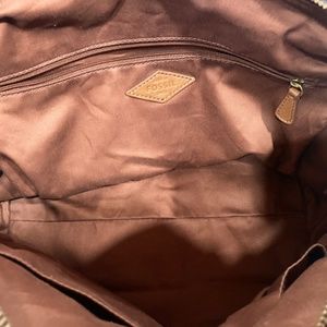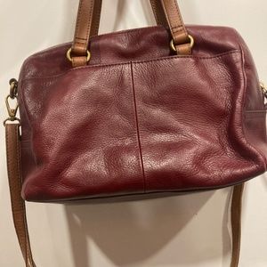 Tan, maroon, black leather Fossil patchwork crossbody purse. Little wear hardly noticeable. Great used condition