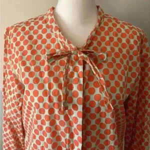 Fossil orange and light blue polka dot blouse size medium. Light weight and machine washable.